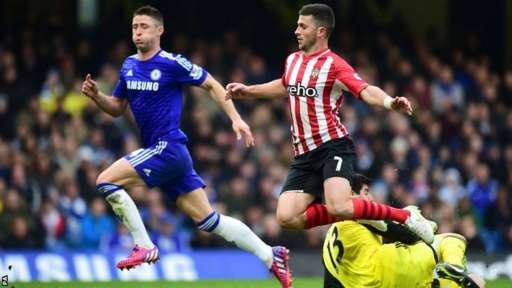 Лидерът в английската Висша лига Челси не успя да надделее над госта си Саутхмептън, в срещата между двата тима от програмата на 29-ия кръг на шампионата.