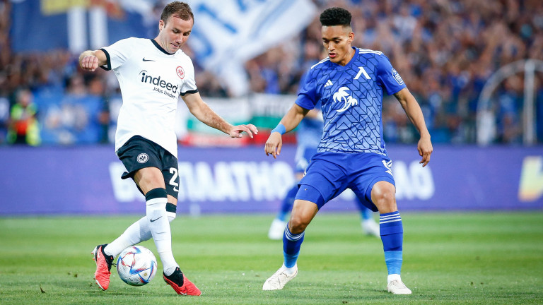 ГООЛ ЗА АЙНТРАХТ! Груба грешка на полузащитника Асен Митков донесе попадение на германския тим. Омар Мармуш притисна халфа, след което обезателно отправи удар, спасен от Пламен Андреев. За негово съжаление обаче топката попадна в Марио Гьотце, който комбинира с Коло Муани, а от непосредствена близост нападателят се разписа за 1:0. |
