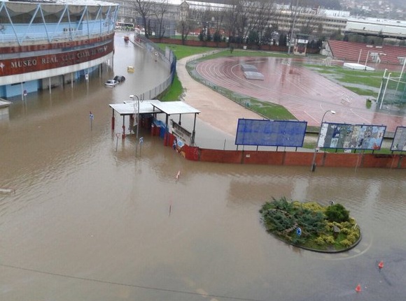 Стадионът на Селта е под вода, малко преди срещата с Атлетико (Мадрид) от Ла Лига.