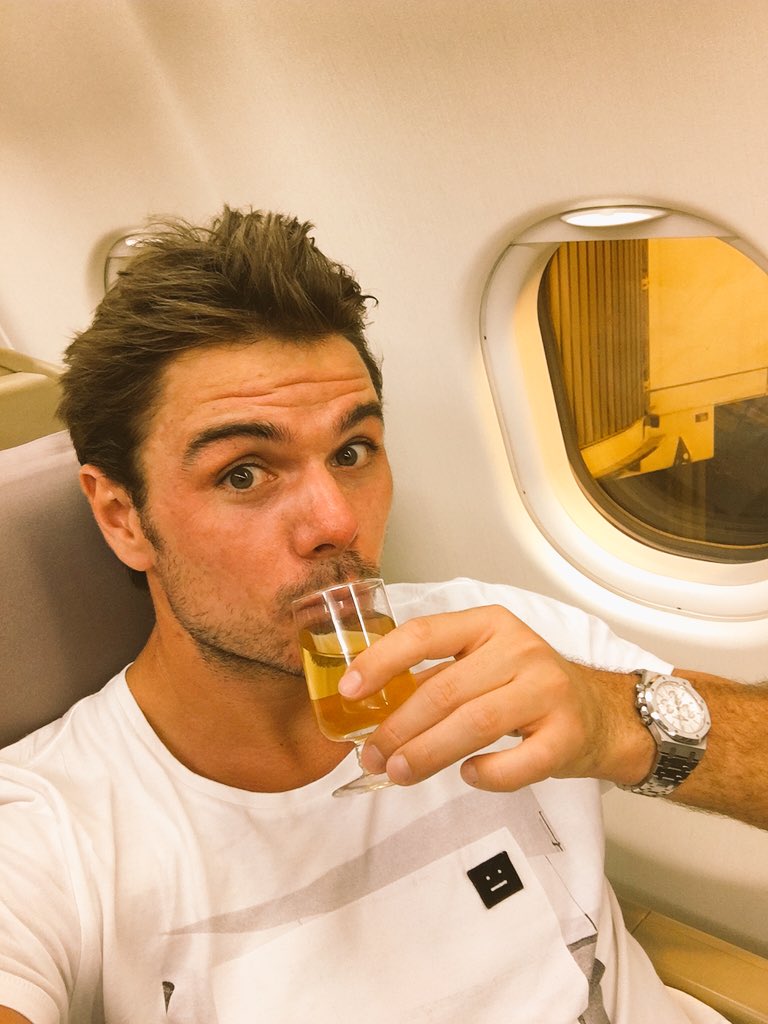 Още в същия ден Стан отлетя за Мелбърн и сподели в социалните мрежи как празнува успеха си в самолета.